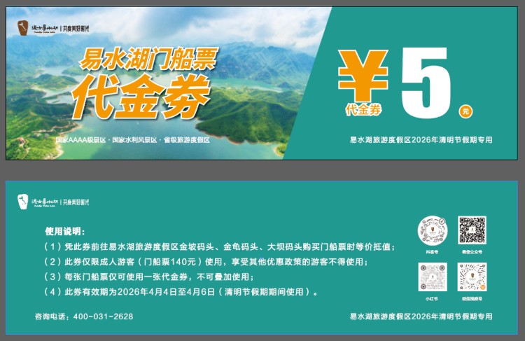 易水湖(门票+船票):120元/每人(原价140元/每人)